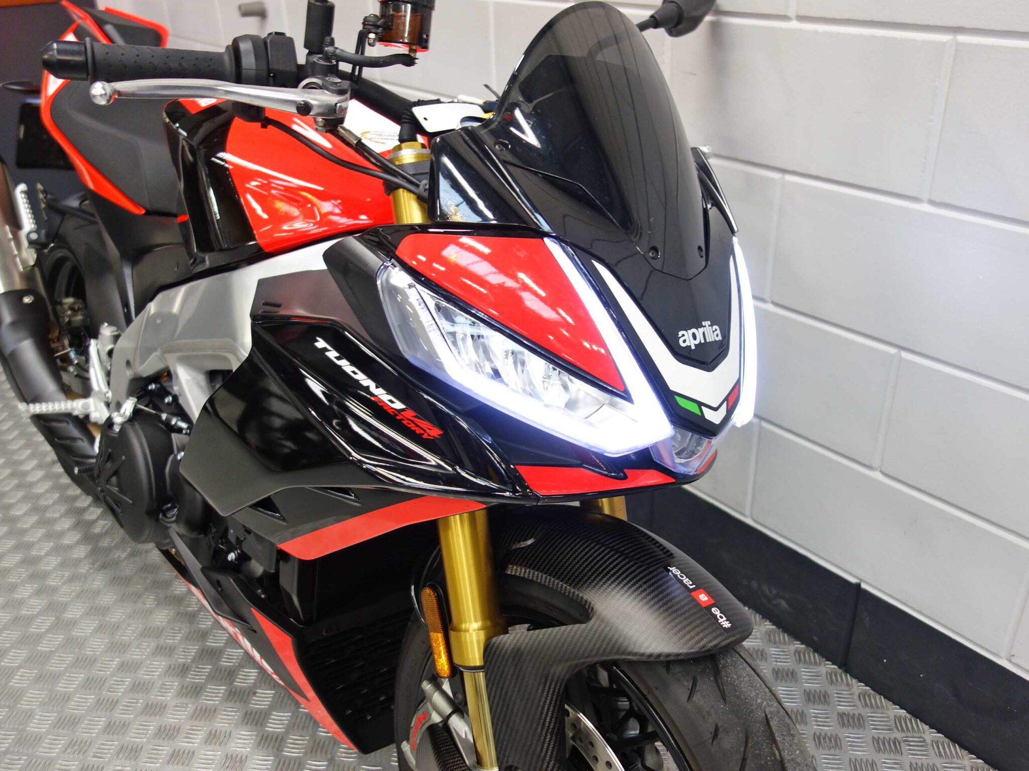 Onmiskenbaar Italiaans en gebouwd voor rijders die beleving zoeken. Deze Aprilia Tuono V4 1100 Factory WSBK uit 2024 laat je elke rit intens ervaren. Met 129 kW vermogen reageert het V4 blok direct en soepel, met een soundtrack die uitnodigt om door te rijden. De motor heeft 8700 kilometer gereden en voelt strak en gecontroleerd aan, precies zoals je van een Factory uitvoering mag verwachten. De zitpositie is sportief maar verrassend bruikbaar voor dagelijks gebruik. Op bochtige wegen merk je hoe licht en precies hij stuurt, terwijl hij op tempo rust en vertrouwen geeft. De elektronisch instelbare Öhlins vering past zich aan jouw rijstijl aan en zorgt voor comfort en stabiliteit, of je nu rustig rijdt of stevig doorpakt. Brembo remmen leveren krachtige en goed doseerbare remkracht, wat bijdraagt aan het veilige gevoel. Je kiest eenvoudig uit verschillende rijmodi waarmee gasrespons, tractie en motorrem worden afgestemd. Traction control en ABS ondersteunen je zonder de rijbeleving te verstoren. Het heldere TFT Display toont alle informatie overzichtelijk en blijft goed afleesbaar in elke situatie. Deze Tuono onderscheidt zich verder met zijn WSBK kleurstelling en fraaie details zoals carbon remklauwkoelers, een buddyseat cover en een getint windscherm. Het geheel oogt exclusief en sportief zonder overdreven te zijn. De motor kan worden gereden met een A rijbewijs. Zoek je een naked bike met superbike prestaties en dagelijkse bruikbaarheid, dan is dit een machine die je moet ervaren.