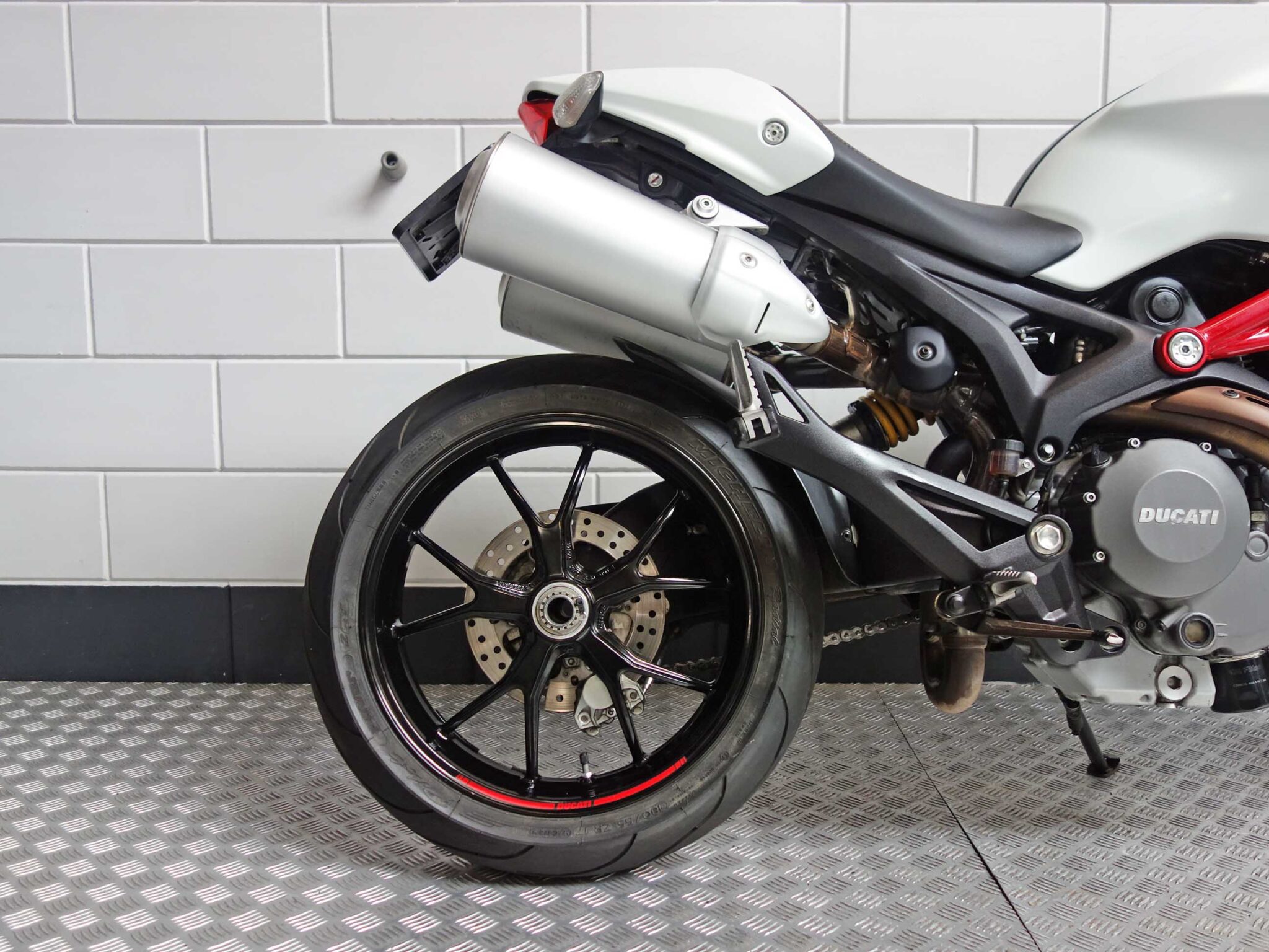 Deze Ducati komt met een aantal fijne extra’s. Het digitale display geeft je in één oogopslag alle belangrijke info, terwijl de korte plaathouder en buddy seat cover zorgen voor een strakke, sportieve uitstraling. De subtiele rimstriping maakt het plaatje compleet.