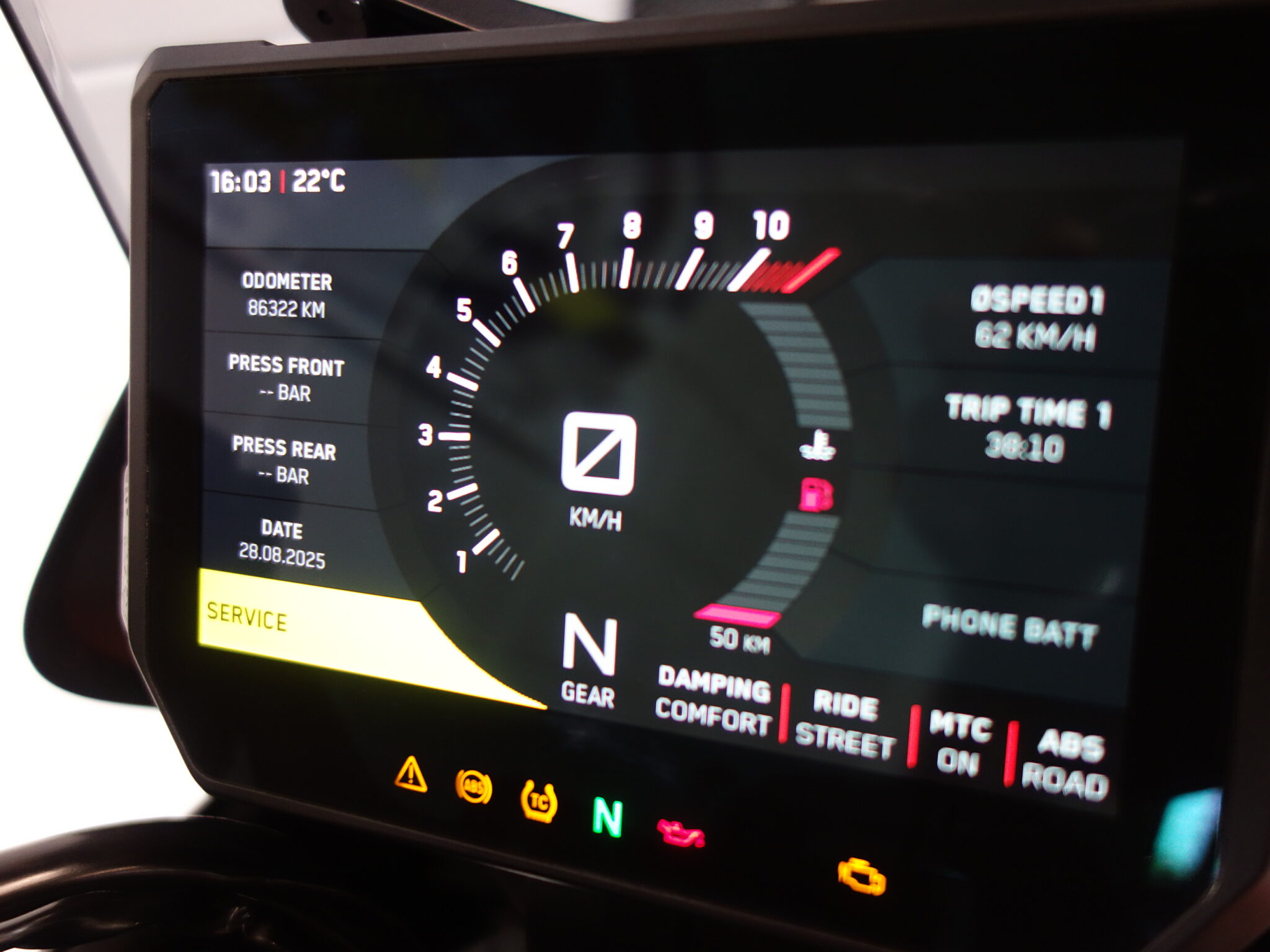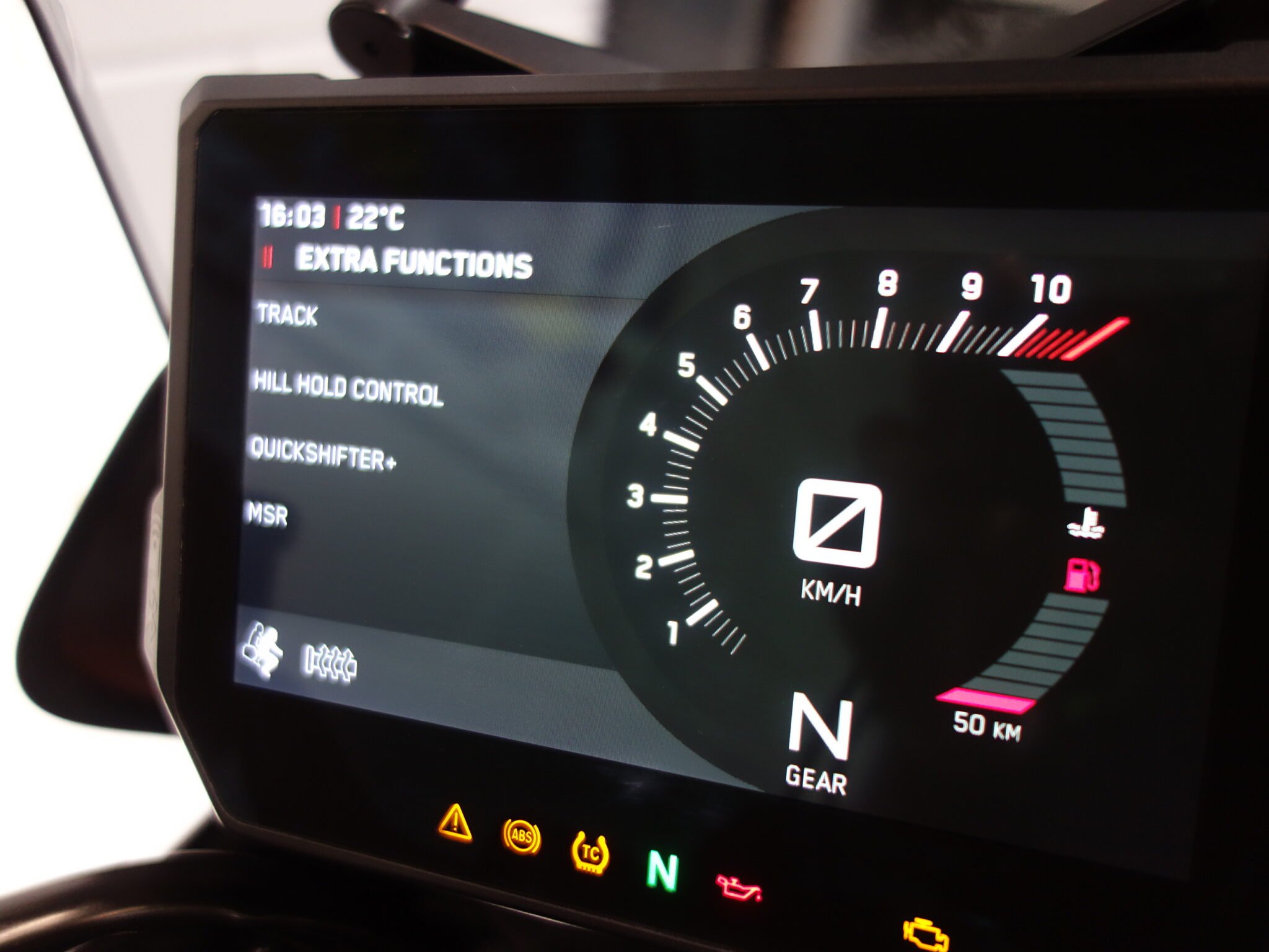 Ook op technisch vlak zit je goed: de motor is uitgerust met ABS en tractiecontrole, wat het vertrouwen onderweg vergroot. Dankzij Hill Hold Control rijd je moeiteloos weg op een helling. De gear indicator, het overzichtelijke TFT display en de tankbeschermstickers maken het plaatje compleet.