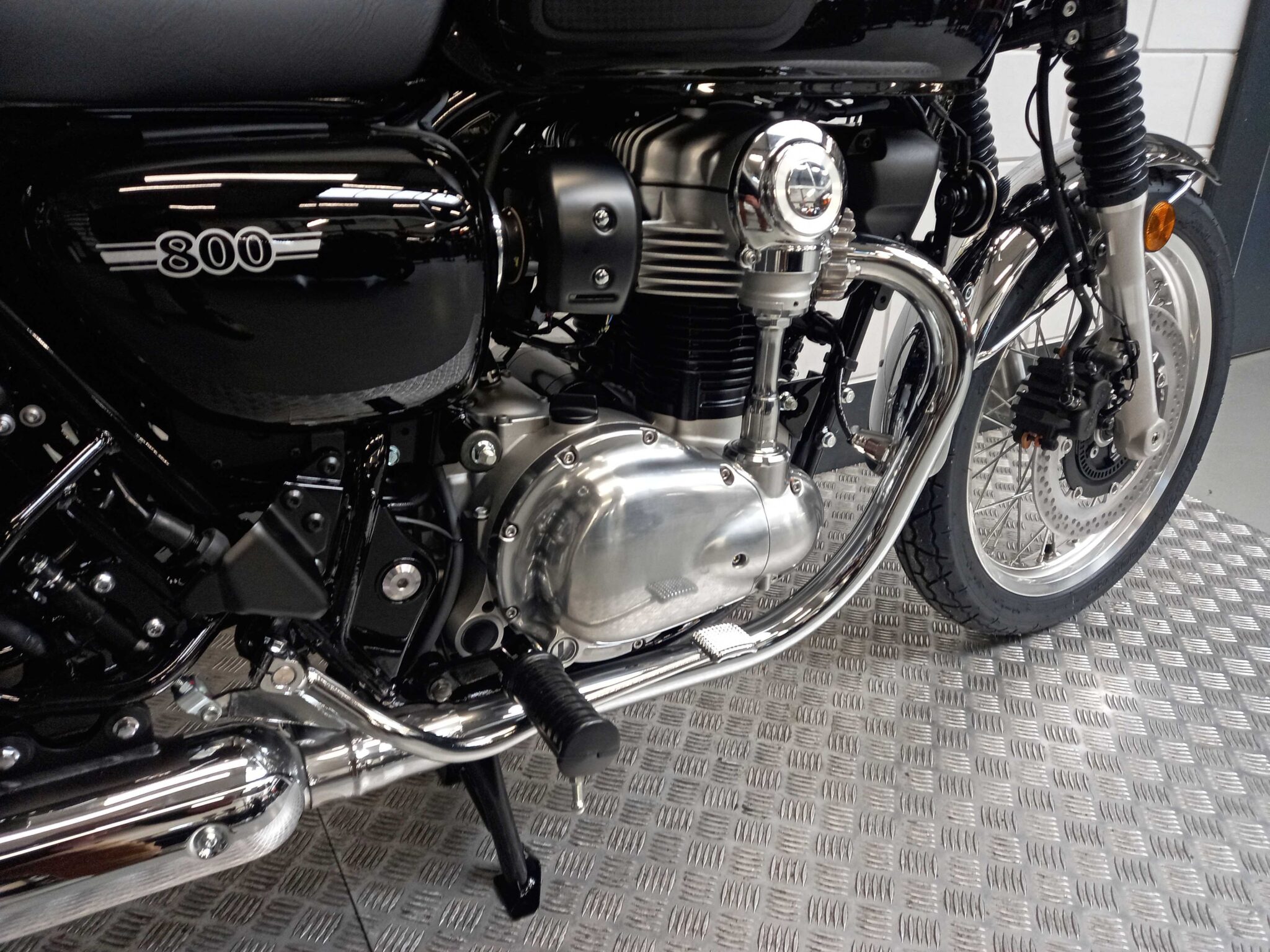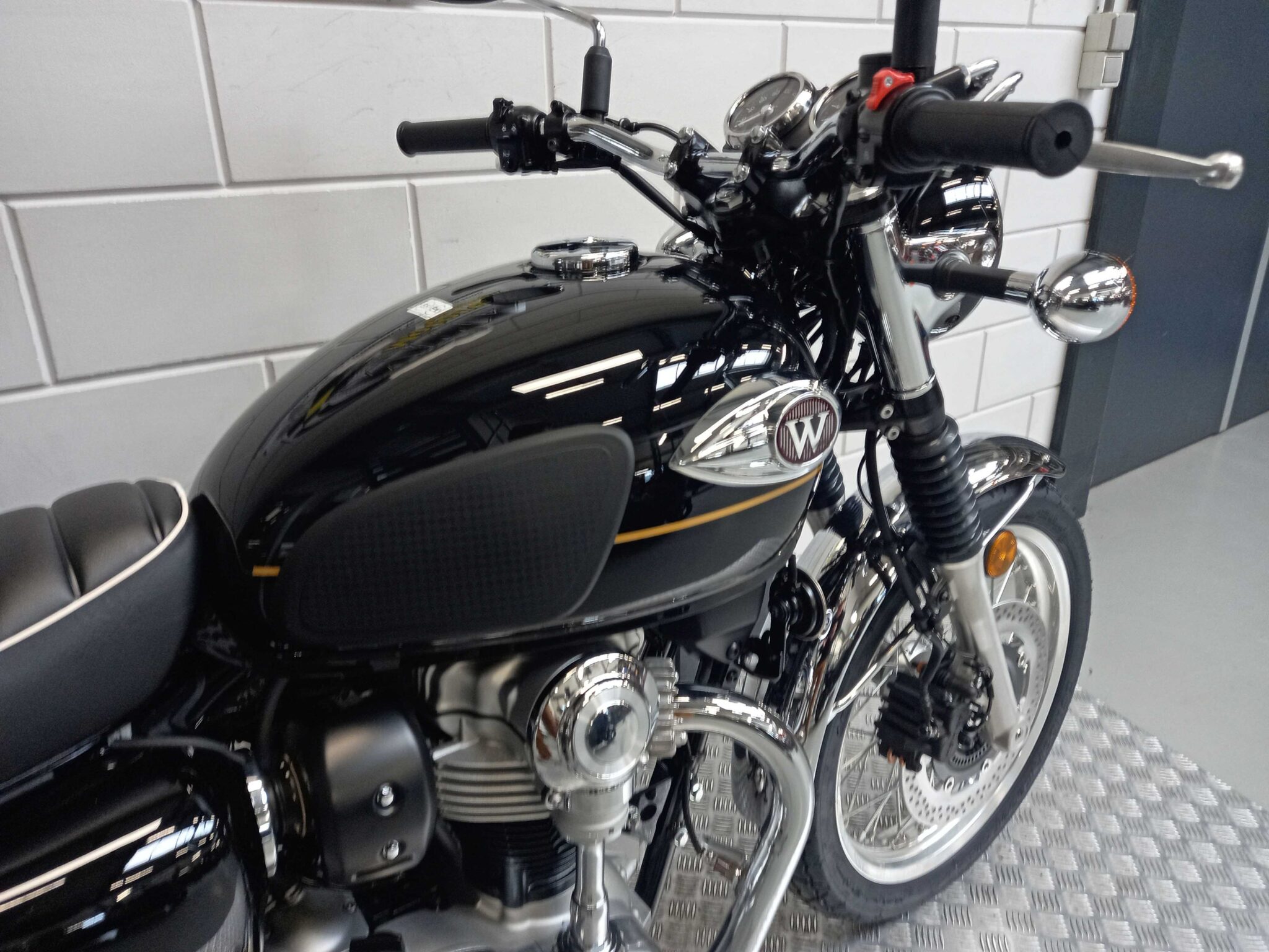Het gaat hier om de nieuwe Kawasaki W800.Niet zomaar een retro maar een icoon. De W800 viert bijna 60 jaar aan Kawasaki W-historie. Het W-model is al sinds de introductie een voorbeeld van Japans vakmanschap en aandacht voor details. Het hart van de W800 is de luchtgekoelde staande twin met unieke koningsas. Dit karaktervolle 773cc grote blok zorgt in combinatie met het gespaakte 19” voorwiel voor een unieke rijervaring. Ondanks zijn kenmerkende authentieke design heeft de W800 een modern rijwielgedeelte, bekrachtigde slipperclutch, goede remprestaties en volledige ledverlichting rondom.