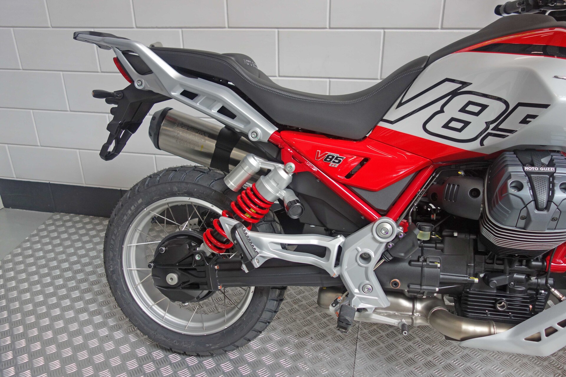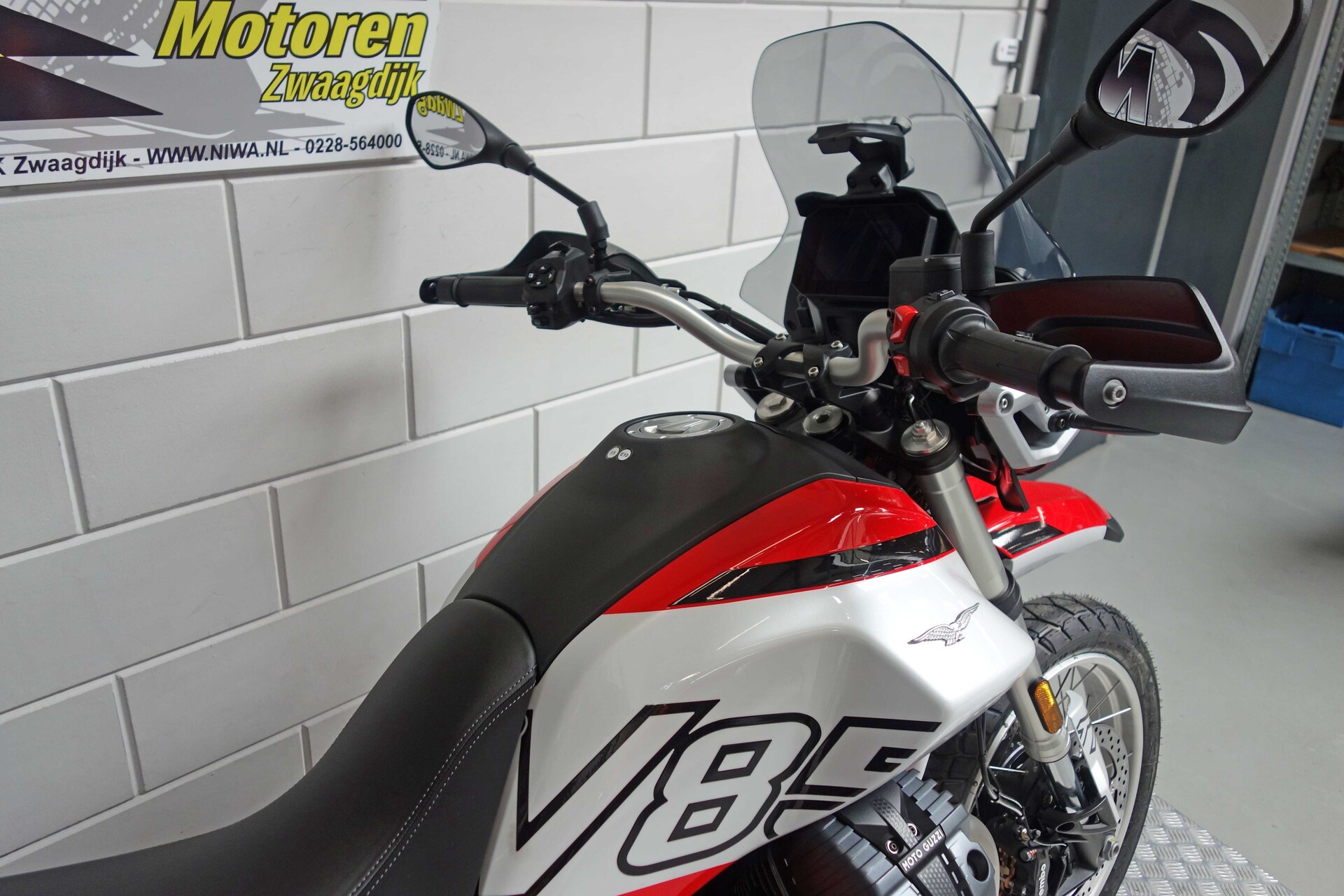 Nu tijdelijk met twee jaar extra fabrieksgarantie!Het gaat hier om de nieuwe model Moto Guzzi V85 TTDe iconische en direct herkenbare styling van de Moto Guzzi V85 evolueert, deze keer met een meer eigentijdse interpretatie, waarbij talloze details zijn verfijnd die de authentieke charme van het oorspronkelijke model behouden.De steunen van de koplampen en het instrumentenpaneel zijn nu van gegoten aluminium, in plaats van de stalen buizen van de vorige generatie, waardoor de topkuip een sportievere en dynamischere uitstraling krijgt. De nieuw ontwikkelde handgreep achter (aangeboden als accessoire voor de V85 Strada) is ook van aluminium. Deze stijlvolle keuze draagt bij aan het verbeterde comfort en de ergonomie voor de passagier. De brandstoftank is een van de bepalende elementen van de V85 line-up, met zijn fraaie vormen die nu nog robuuster en dynamischer ogen. De tweecilindermotor heeft nieuwe cilinderdeksels, waarvan het ontwerp de technische upgrades van de motor benadrukt. De motor voldoet aan de nieuwe Euro 5+ emissievoorschriften en heeft veel inspanningen ondergaan om het vermogen te verhogen en de gasrespons – en dus het koppel – bij lage toerentallen te verbeteren. Dit is bereikt dankzij de toepassing van variabele kleptiming en klopsensoren. Het resultaat is een hoger maximumkoppel – 83 Nm bij 5.100 t/min – en meer vermogen – 80 pk bij 7.750 t/min – evenals meer rijplezier en een betere gasrespons, die meer flexibiliteit biedt bij lage toerentallen en hoge versnellingen. De injectie maakt gebruik van een enkelvoudig 52 mm gasklephuis, terwijl de Ride-by-Wire gasklepregeling met meerdere dimensies, een oplossing die een nauwkeurige regeling van de opening van de gasklep mogelijk maakt, niet alleen de algehele efficiëntie optimaliseert voor een soepele, rijke vermogensafgifte, maar ook het brandstofverbruik verlaagt.De Moto Guzzi V85 TT is de “all-terrain” motorfiets die de oorspronkelijke geest van de V85 belichaamt, met een zeer suggestief uiterlijk en styling die teruggrijpt naar de sferen van de jaren 80 en de enduromotoren waarmee je alles kon doen, van alledaags vervoer tot avontuurlijke reizen. Hij is uitgerust met spaakwielen die plaats bieden aan tubeless banden van 17″ en 19″ (respectievelijk 150/70-17 en 110/80-19), maten die zelfs off-road liefhebbers tevreden zullen stellen. Bovendien wordt de motor afgeschermd door een nieuwe aluminium beschermplaat en zijn de handgrepen voorzien van verbeterde, beter beschermende handkappen. De Moto Guzzi V85 TT valt op door zijn rood gespoten frame, gecombineerd met de suggestieve tweekleurige Rosso Fuji en Grigio Tambora kleurstelling. Zelfs de veer van de achter schokdemper is rood en kan eenvoudig worden ingesteld met een handige knop.