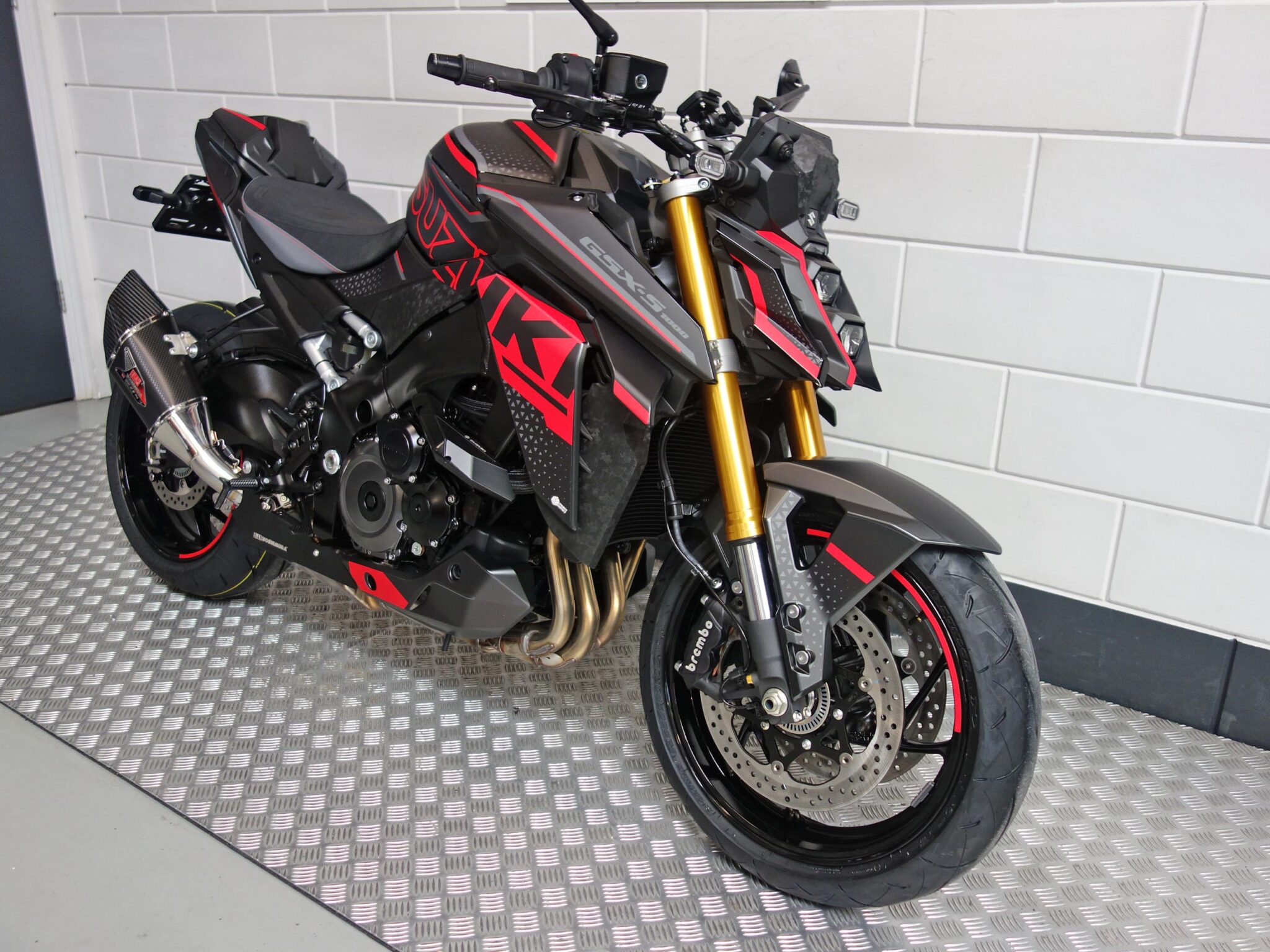 Rij direct weg op de nieuwe Suzuki GSX-S1000!Maak een proefritje op ons demo-model!Inclusief 10 jaar garantie!Dit model is uitgevoerd met het Street Extreme + pakket, bestaande uit:- Yoshimura uitlaat- Buddyseat cover- Design Spiegels- Korte kentekenplaathouder- tankpad-Â bobbins- Luxe zadel- Framesliders- Stickerset- Navigatiedocking naar keuzeSuzuki presenteert de gloednieuwe GSX-S1000: een volbloed naked in de meest pure vorm. De machine levert indrukwekkende prestaties, geeft de rijder nog meer vertrouwen en valt extra op door zijn volledig nieuwe, maar bovenal agressieve styling.- Focus op rijder met verbeterde rij-eigenschappen- Uitgebreid pakket aan assistentiesystemen- Vijf standen tractiecontroleSuzuki levert de nieuwe GSX-S1000 in drie opvallende kleurstellingen: Metallic Triton Blue, Glass Matte Mechanical Grey en Glass Sparke Black, altijd in combinatie met een goudkleurige voorvork.