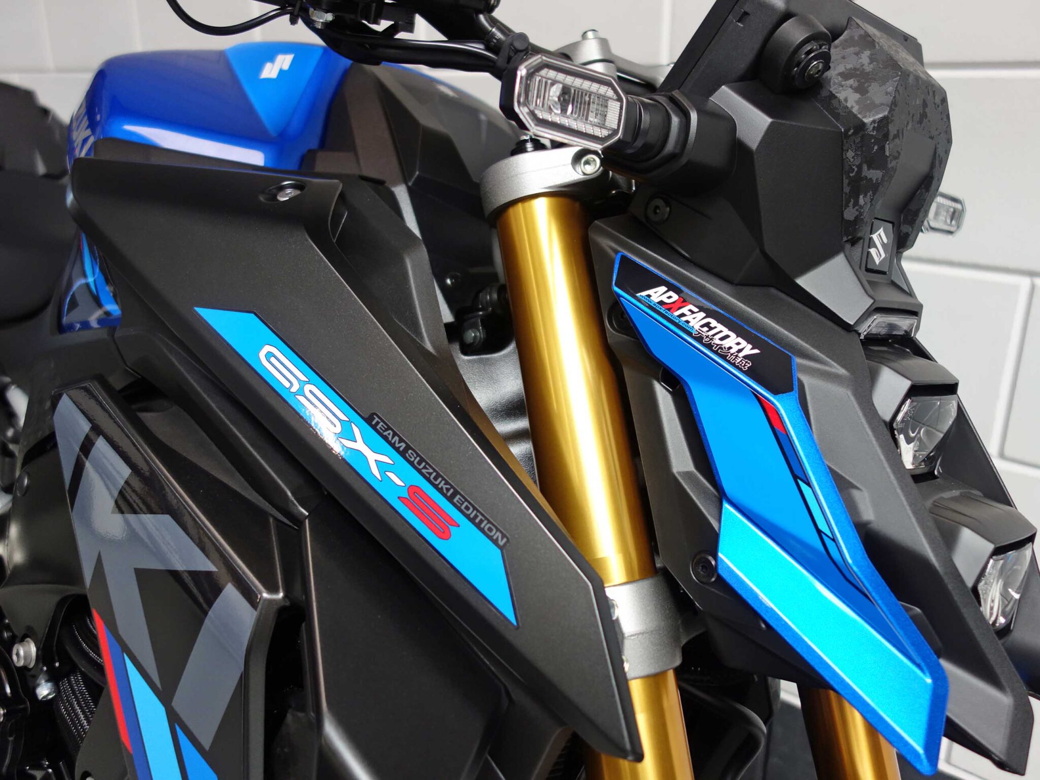 Rij direct weg op de nieuwe Suzuki GSX-S1000!Maak een proefritje op ons demo-model!Inclusief 10 jaar garantie!Dit model is uitgevoerd met het Street Extreme + pakket, bestaande uit:- Yoshimura uitlaat- Buddyseat cover- Design Spiegels- Korte kentekenplaathouder- tankpad-Â bobbins- Luxe zadel- Framesliders- Stickerset- Navigatiedocking naar keuzeSuzuki presenteert de gloednieuwe GSX-S1000: een volbloed naked in de meest pure vorm. De machine levert indrukwekkende prestaties, geeft de rijder nog meer vertrouwen en valt extra op door zijn volledig nieuwe, maar bovenal agressieve styling.- Focus op rijder met verbeterde rij-eigenschappen- Uitgebreid pakket aan assistentiesystemen- Vijf standen tractiecontroleSuzuki levert de nieuwe GSX-S1000 in drie opvallende kleurstellingen: Metallic Triton Blue, Glass Matte Mechanical Grey en Glass Sparke Black, altijd in combinatie met een goudkleurige voorvork.