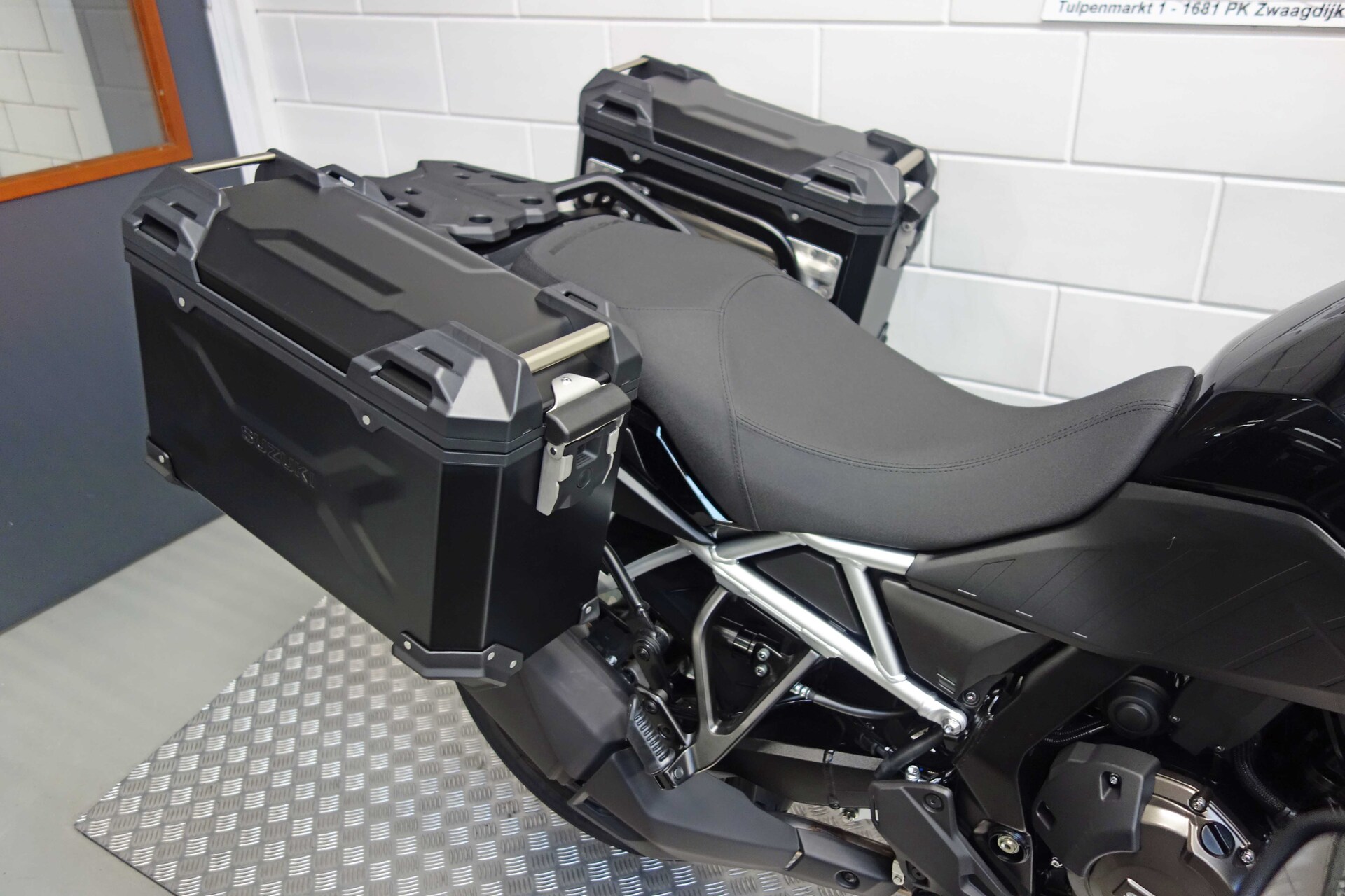 De nieuwe Suzuki V-Strom 800.Inclusief 10 jaar fabrieksgarantie! De V-Strom 800 combineert opwindende prestaties met comfort en rijgemak, ongeacht de lengte van je reis. Iedere rit is een aangename belevenis dankzij de geavanceerde technologie en het gebruiksgemak. Je eigen pad kiezen was nog nooit zo makkelijk.Met dit pakket kom je stoer en strak voor de dag. Het pakket t.w.v. € 2.074,- bestaat uit: Handkappen, Middenbok, Complete set zwart aluminium zij-koffers (2×37 l) en Handvatverwarming. Nu verkrijgbaar voor € 1.749,-* * Prijs exclusief eventuele montagekosten.
